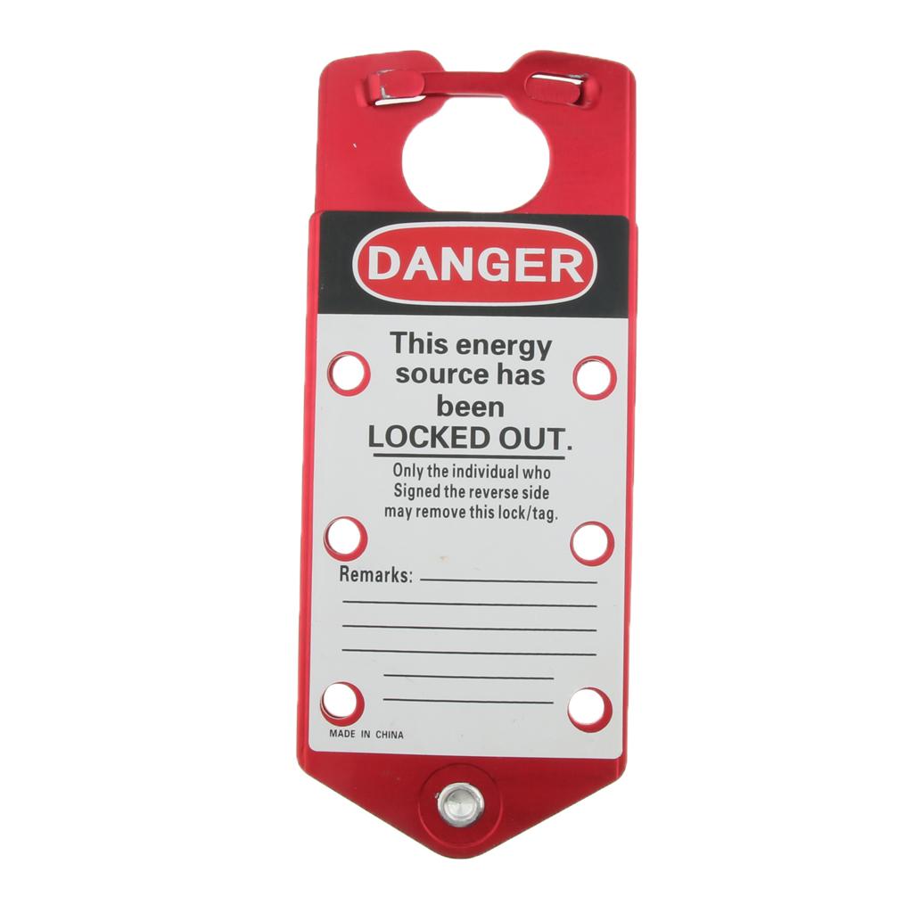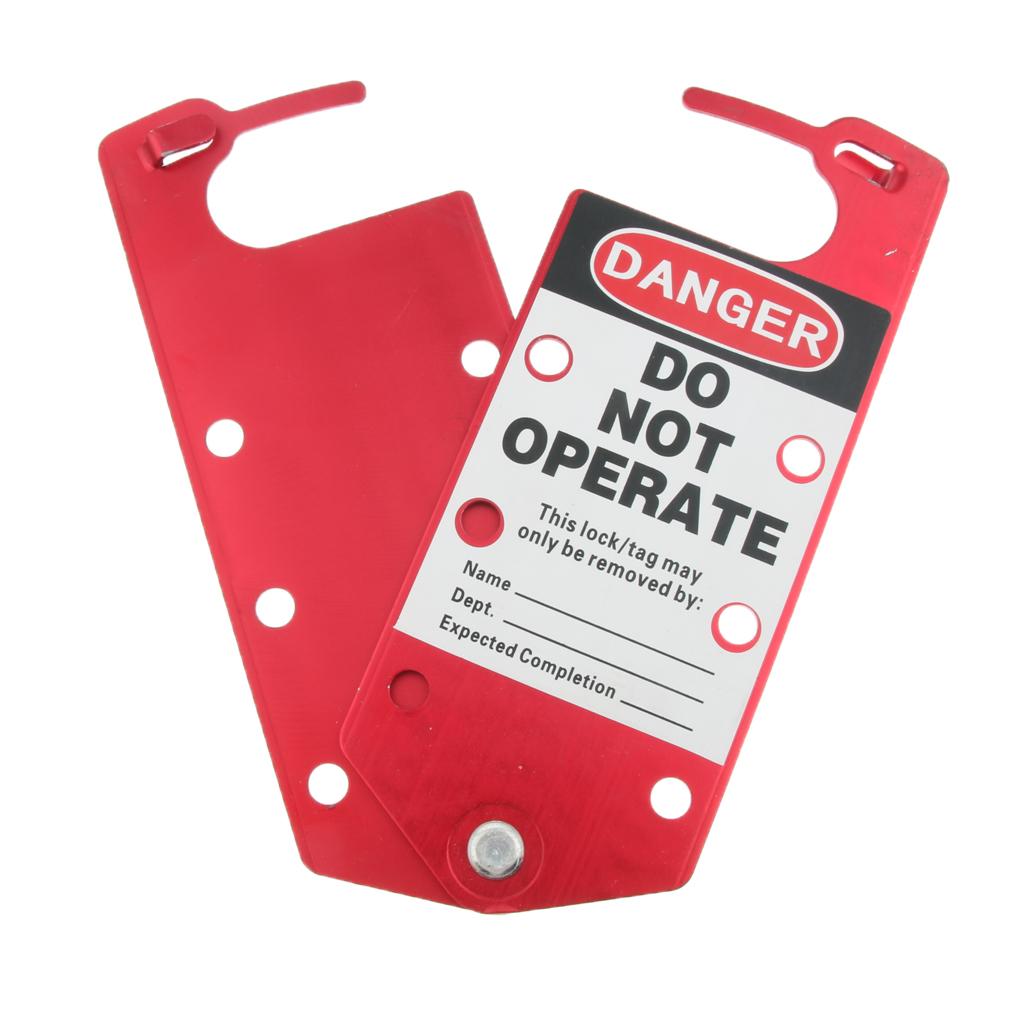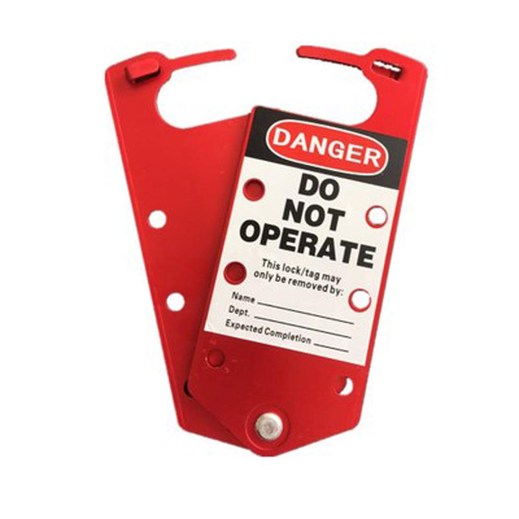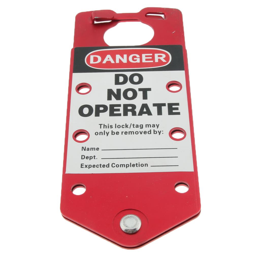 Six holes for padlocks provide ability to require multiple authorizations for access to one locked-out device or energy source