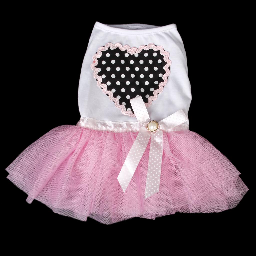 Beautiful dog dress gives pet a bright, breezy, and ultra fashionable look for warm weather outings. Super sweet dog dress features cute heart pattern and tulle hem. This dog dress is perfect for parties or everyday strolls.