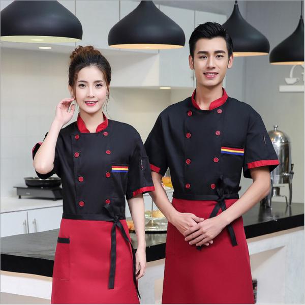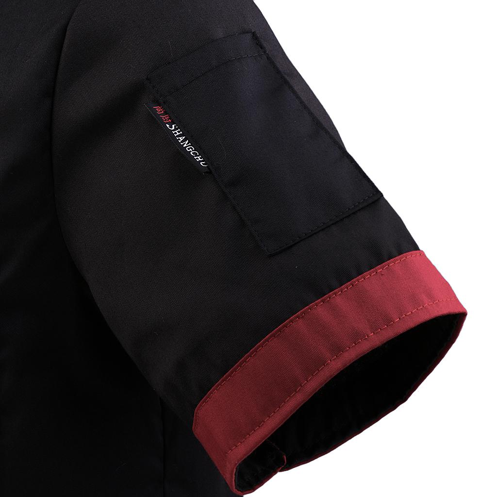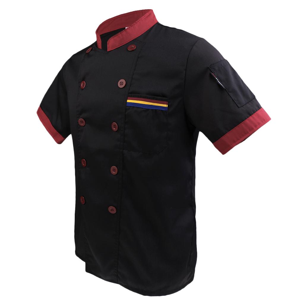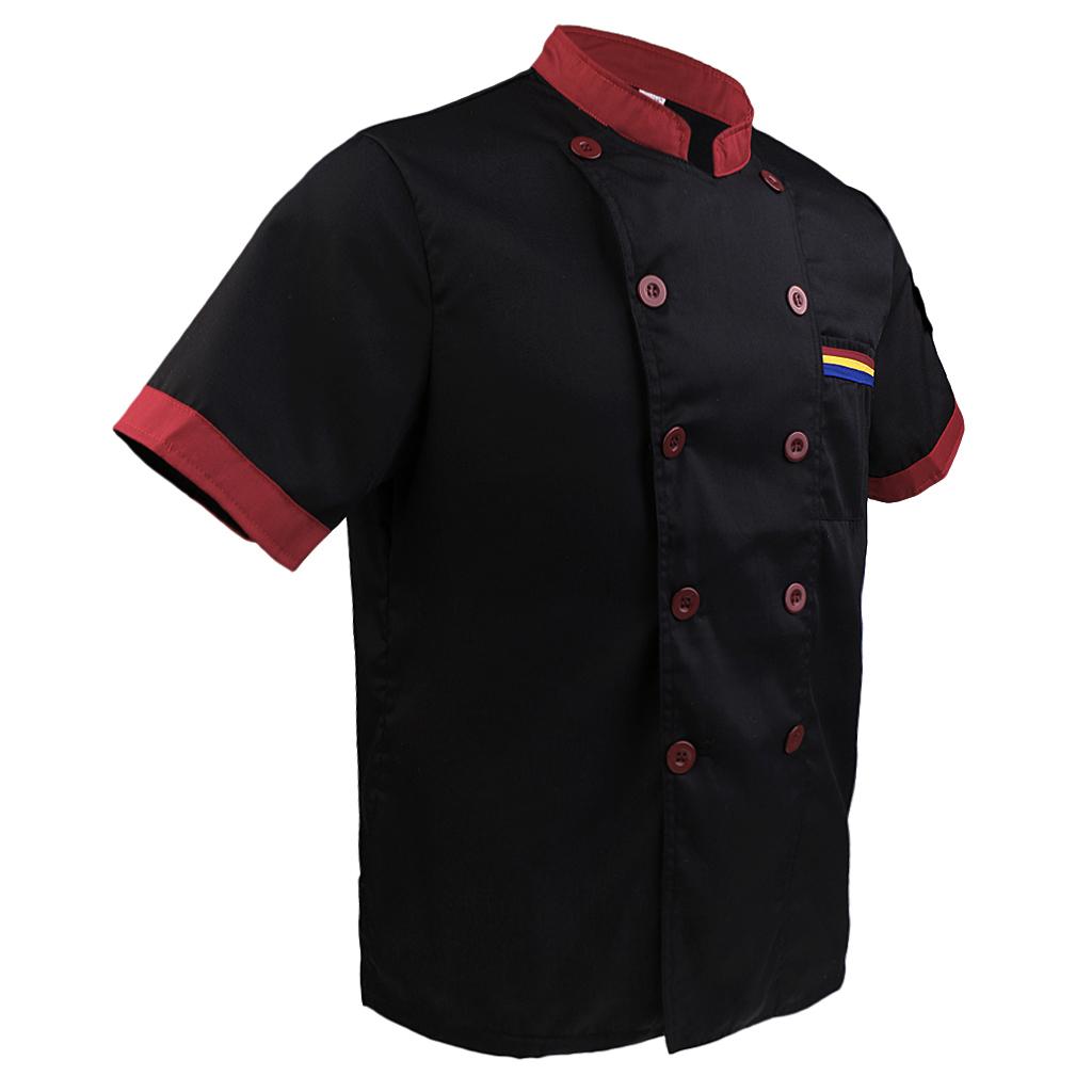 Men Women Chef Uniform Double Breasted Cook Jacket Coat Short Sleeve M Black