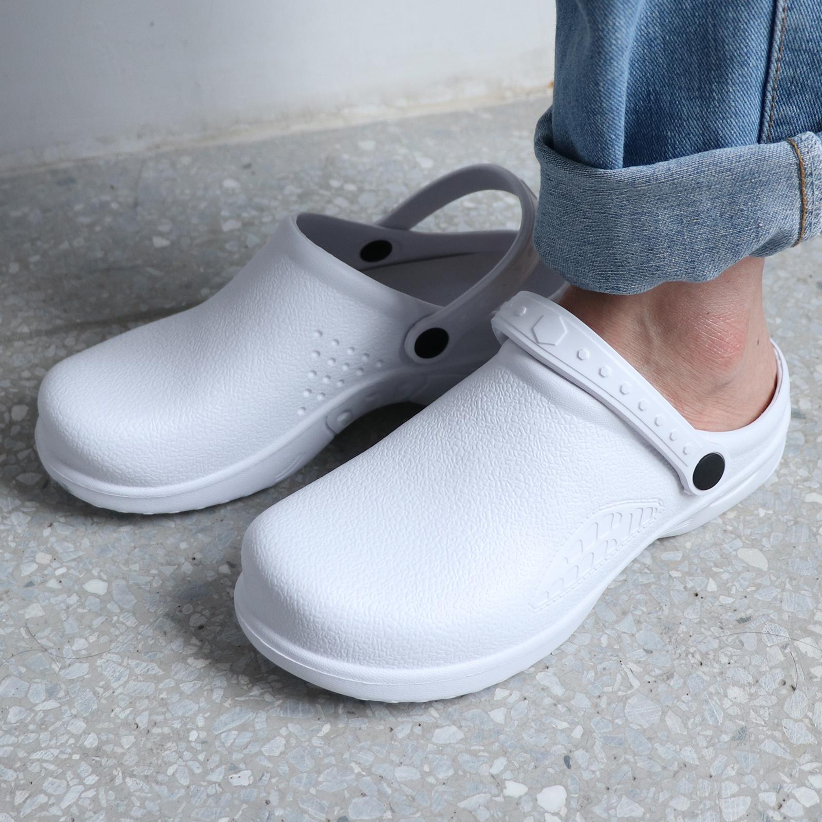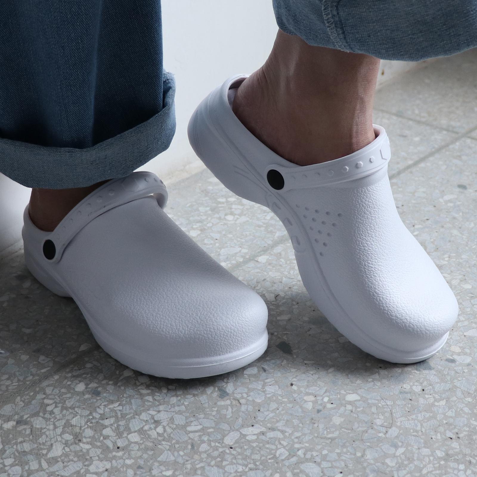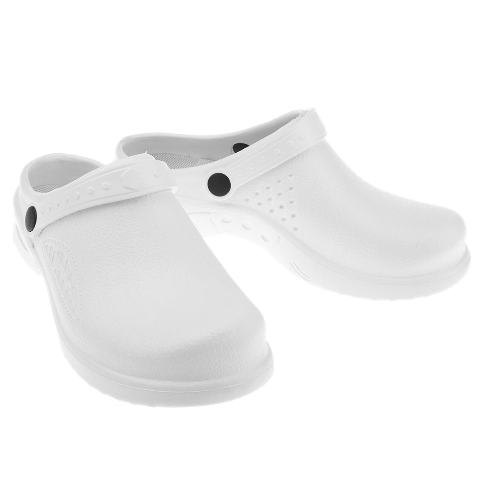 Men Women Cook Medical Nursing Shoes Ultralite Clogs with Strap 38 White