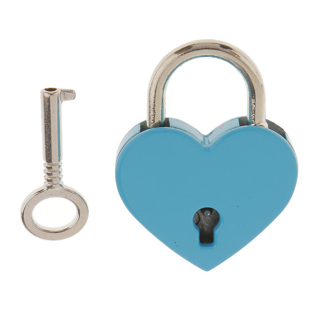 Mini Heart Shaped Padlock with Key Travel Luggage Suitcase Safety Lock Set - Blue M