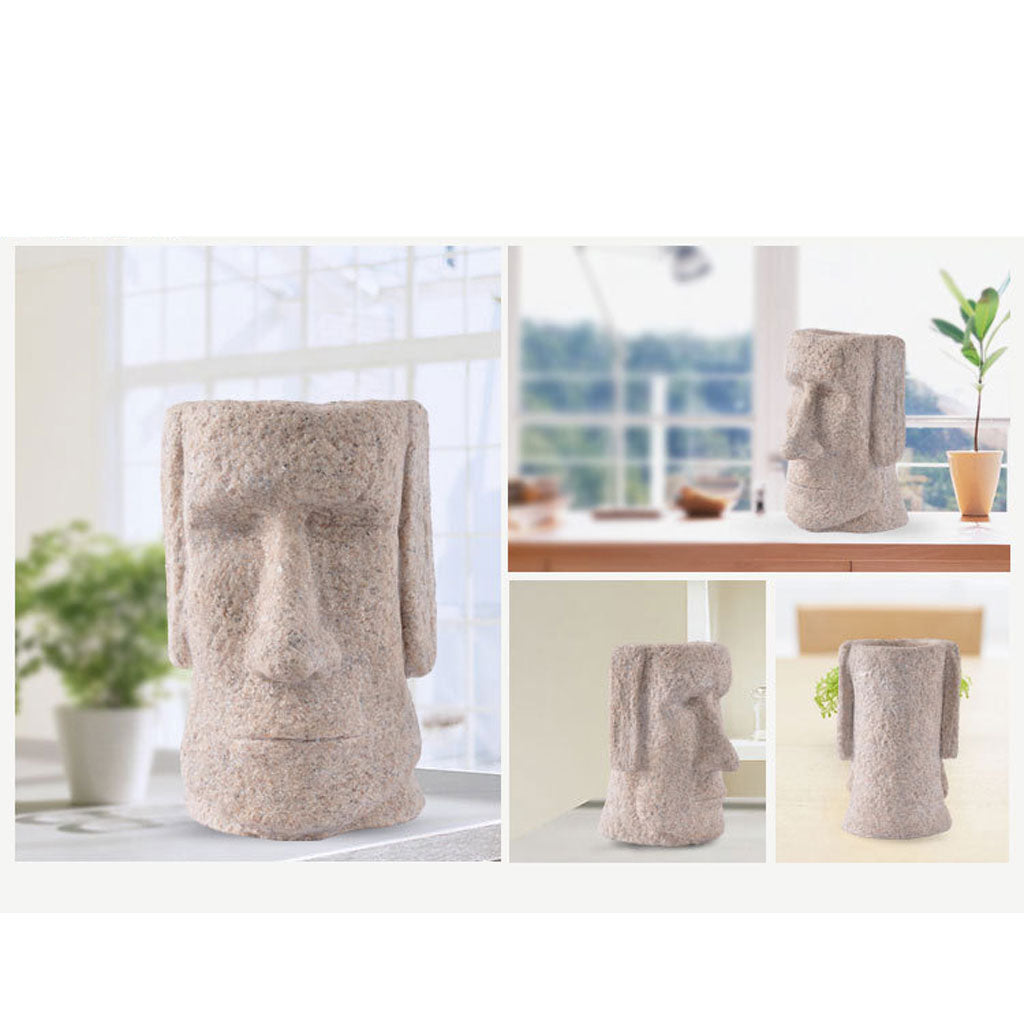 Moai Statue Pen Holder Size: Approx. 3.94 x 4.33 x 5.51" / 10 x 11 x 14cm