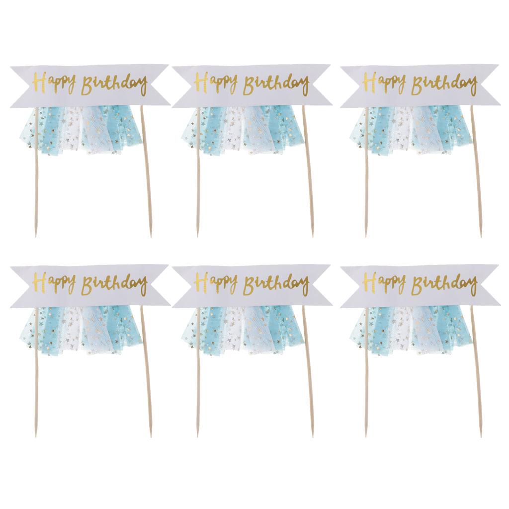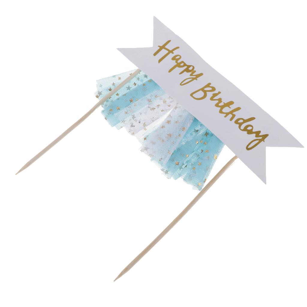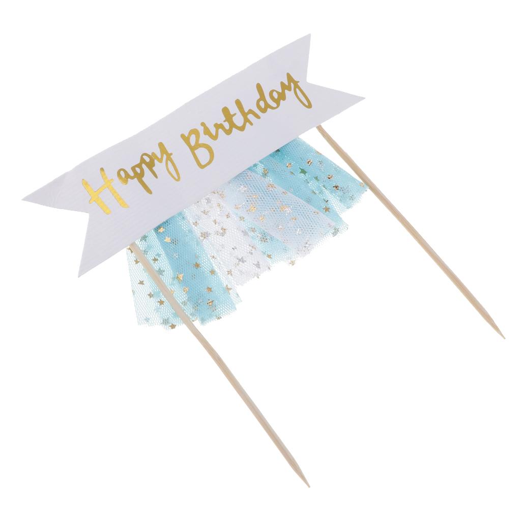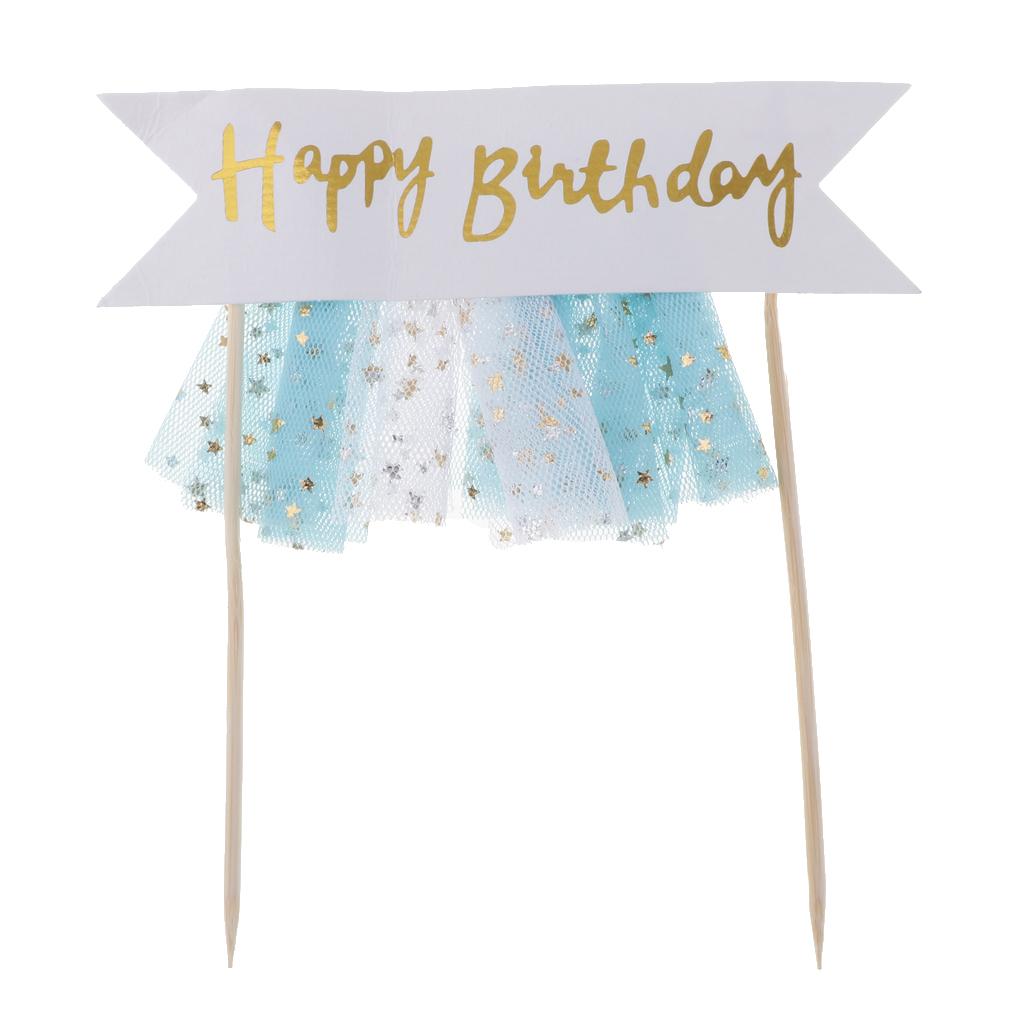 Happy birthday cake topper star tulle cake banner dessert table decorations.
