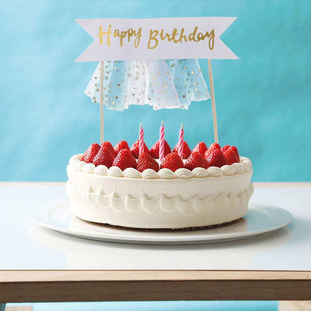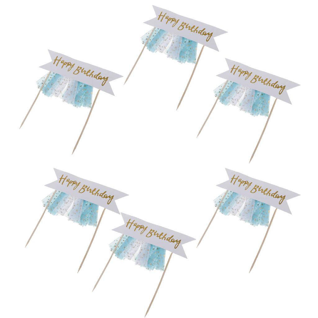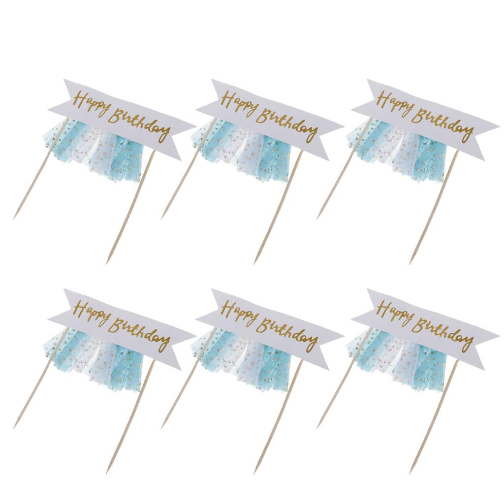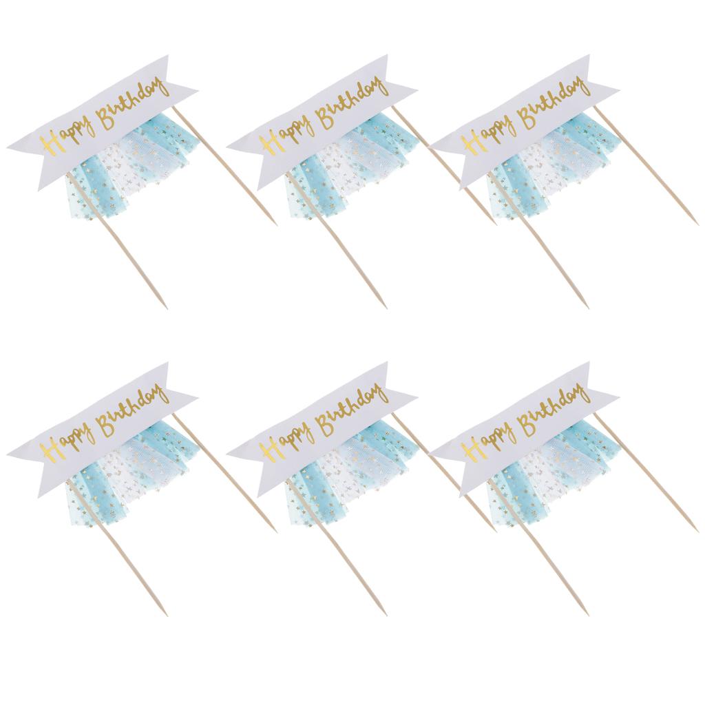 Happy birthday cake topper star tulle cake banner dessert table decorations.