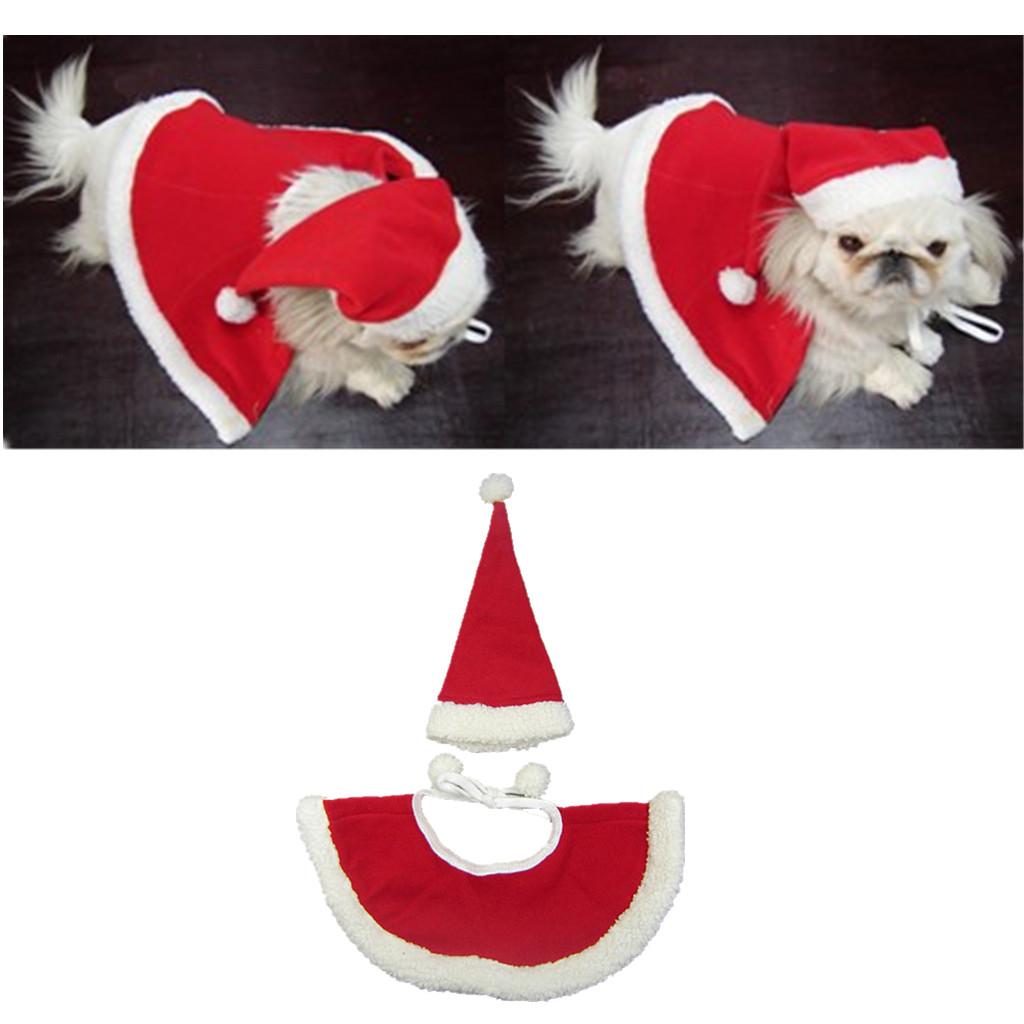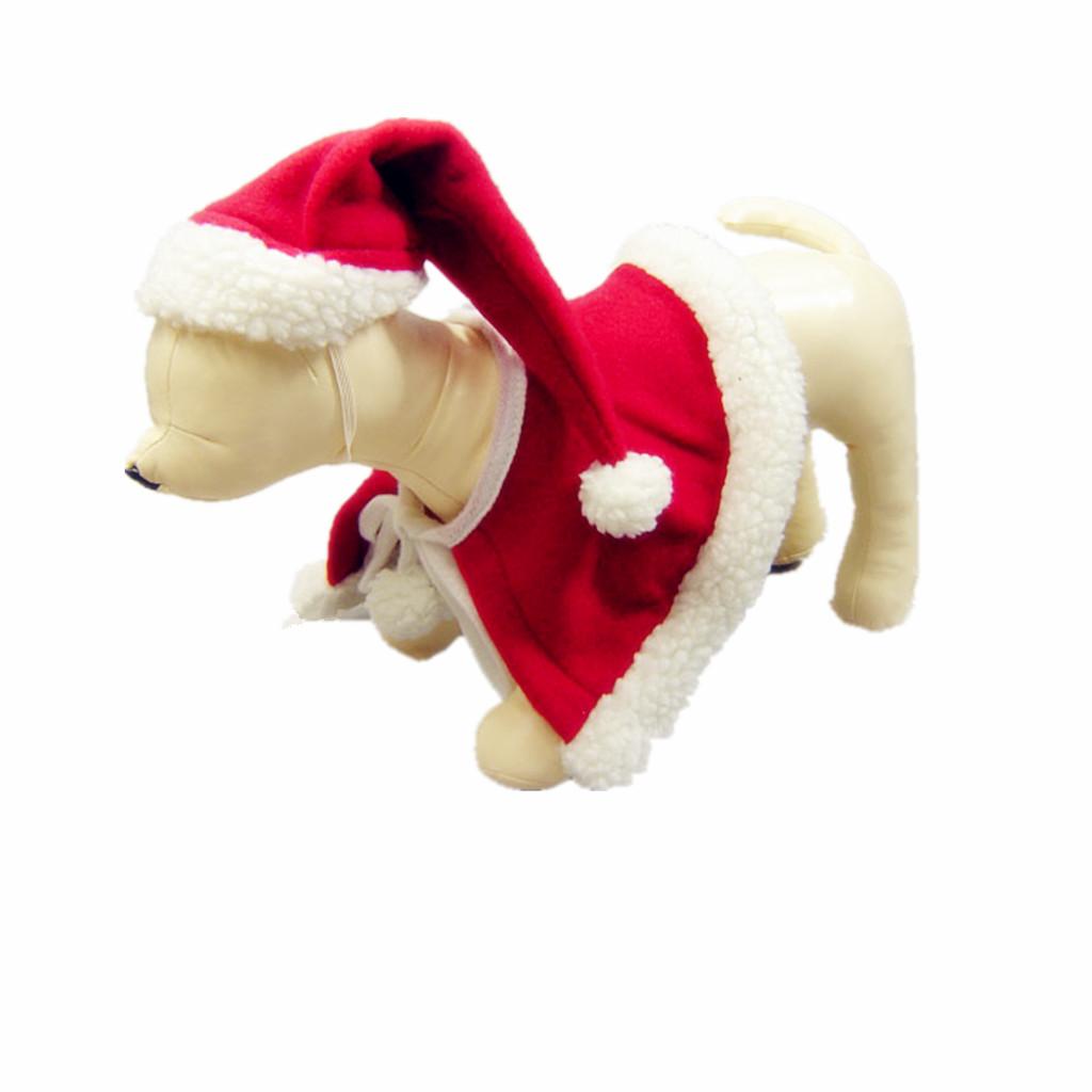 Pet Cat Dog Christmas Clothes Hat & Shawl Santa Coat Hoodie Apparel Red M