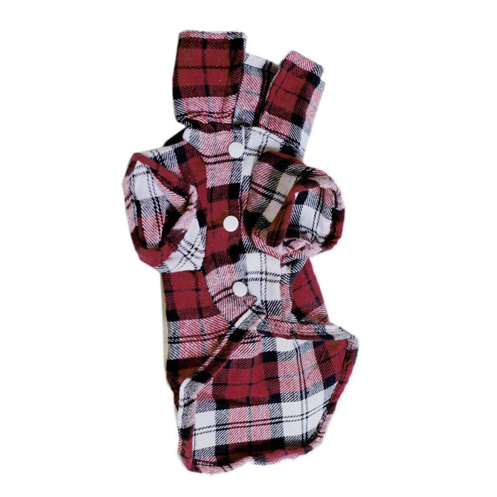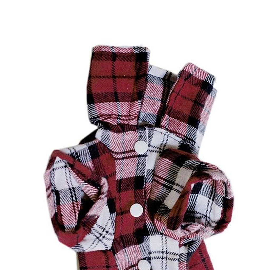 Pet Dog Red Plaid Pattern T-Shirt Lapel Coat Jacket Clothes Apparel Tops--S