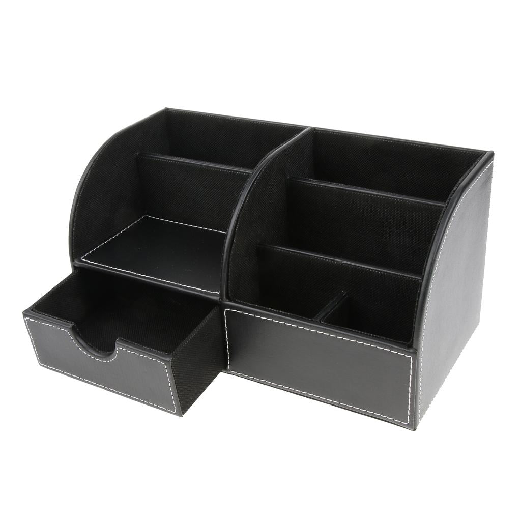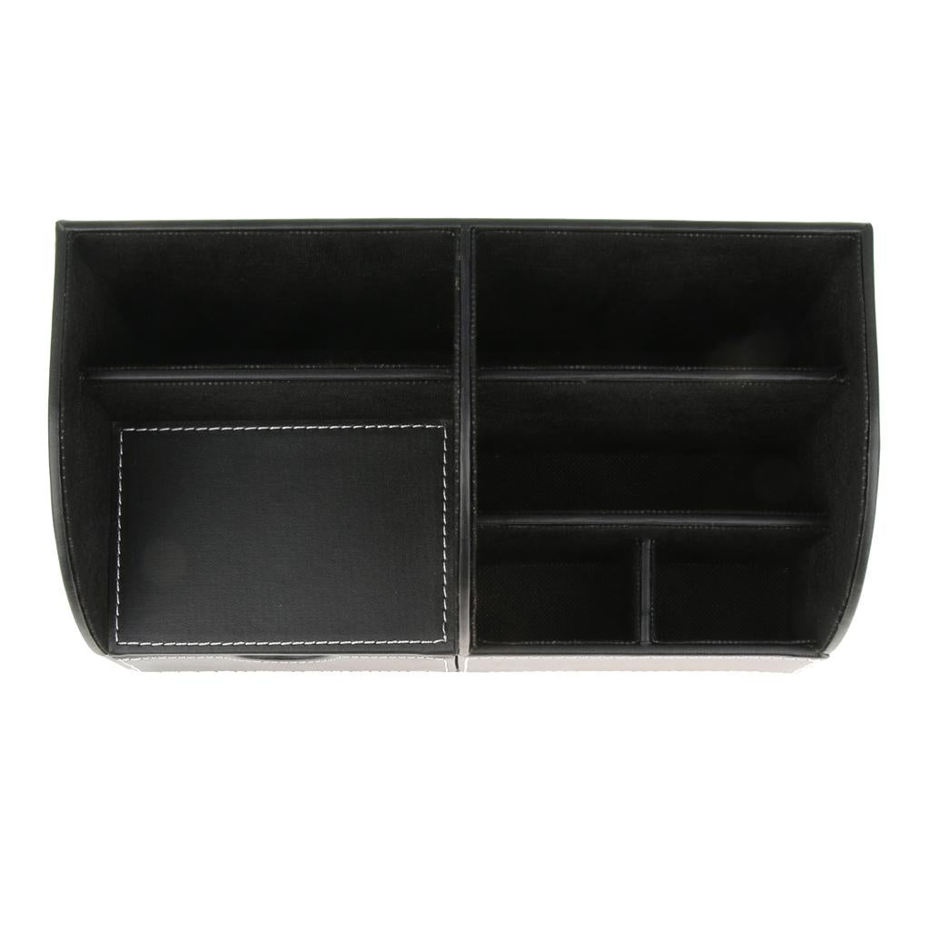 7 divided compartments to organize all your office supplies, pen/pencil, scissors, remote control , cell phone and cards or other small supplies.