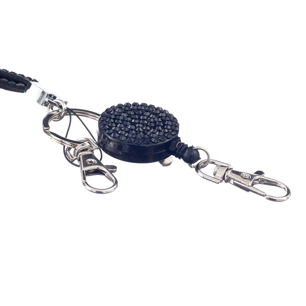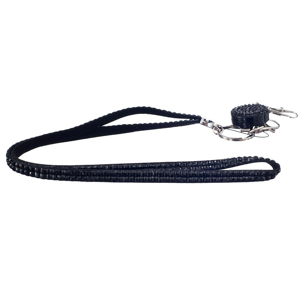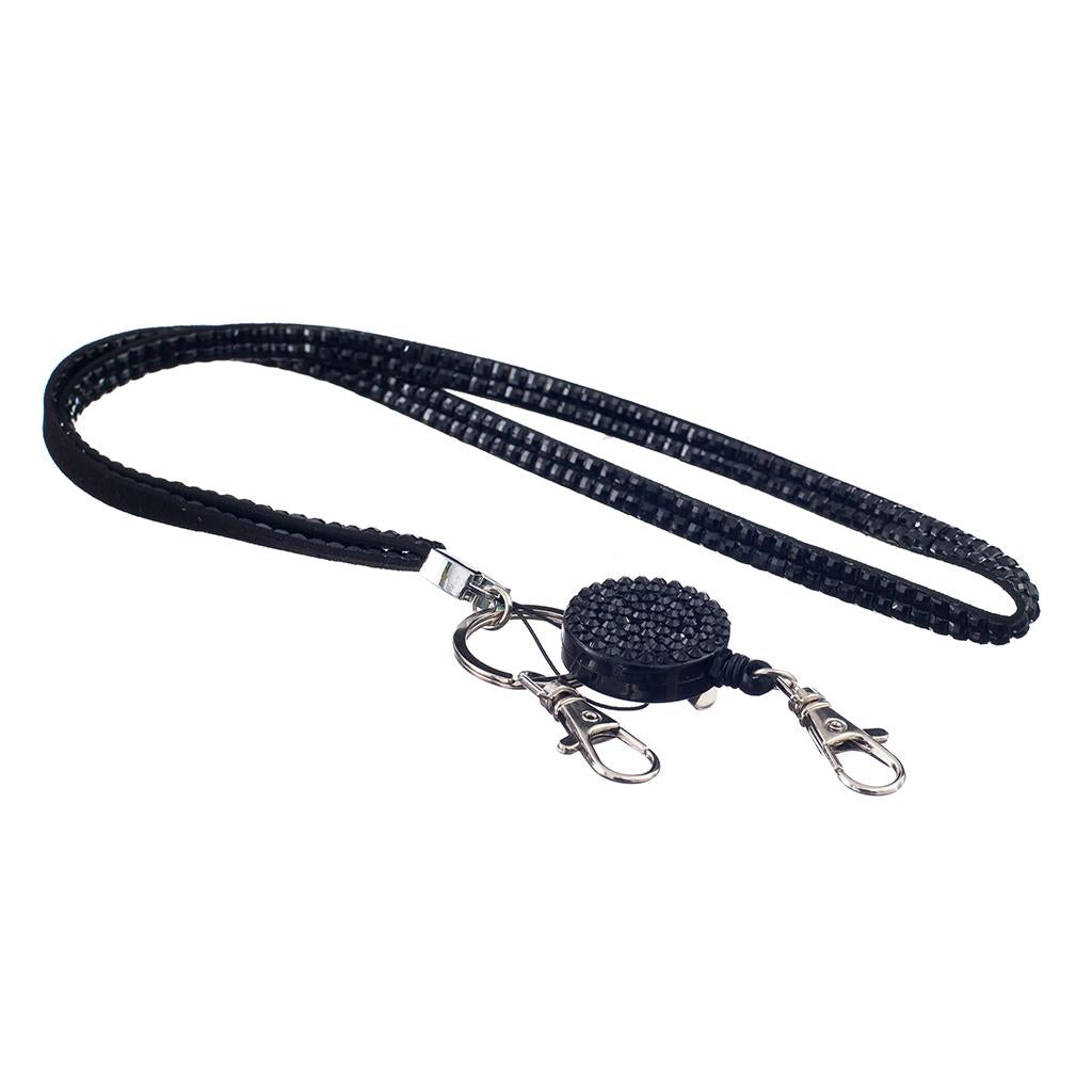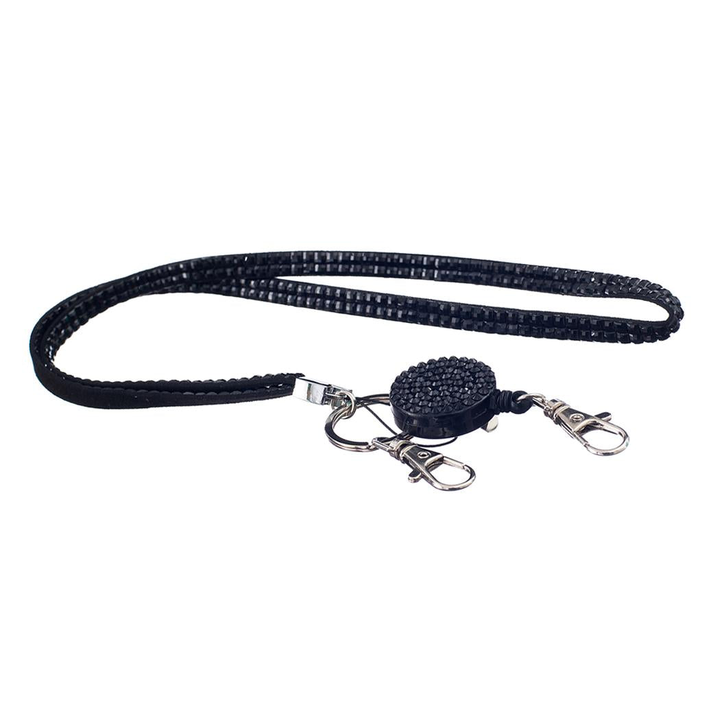 Rhinestone Bling Neck Lanyard Holder ID Card Cell Phone Key Holder Black