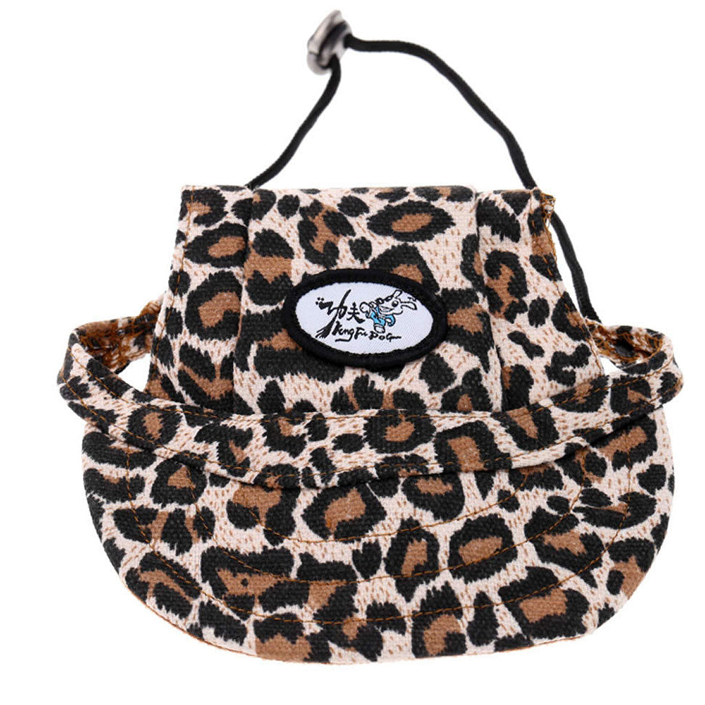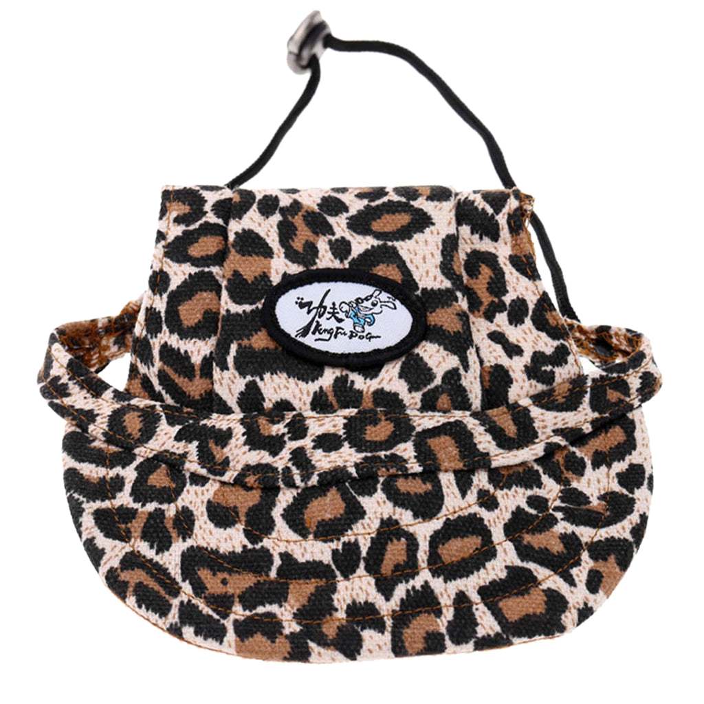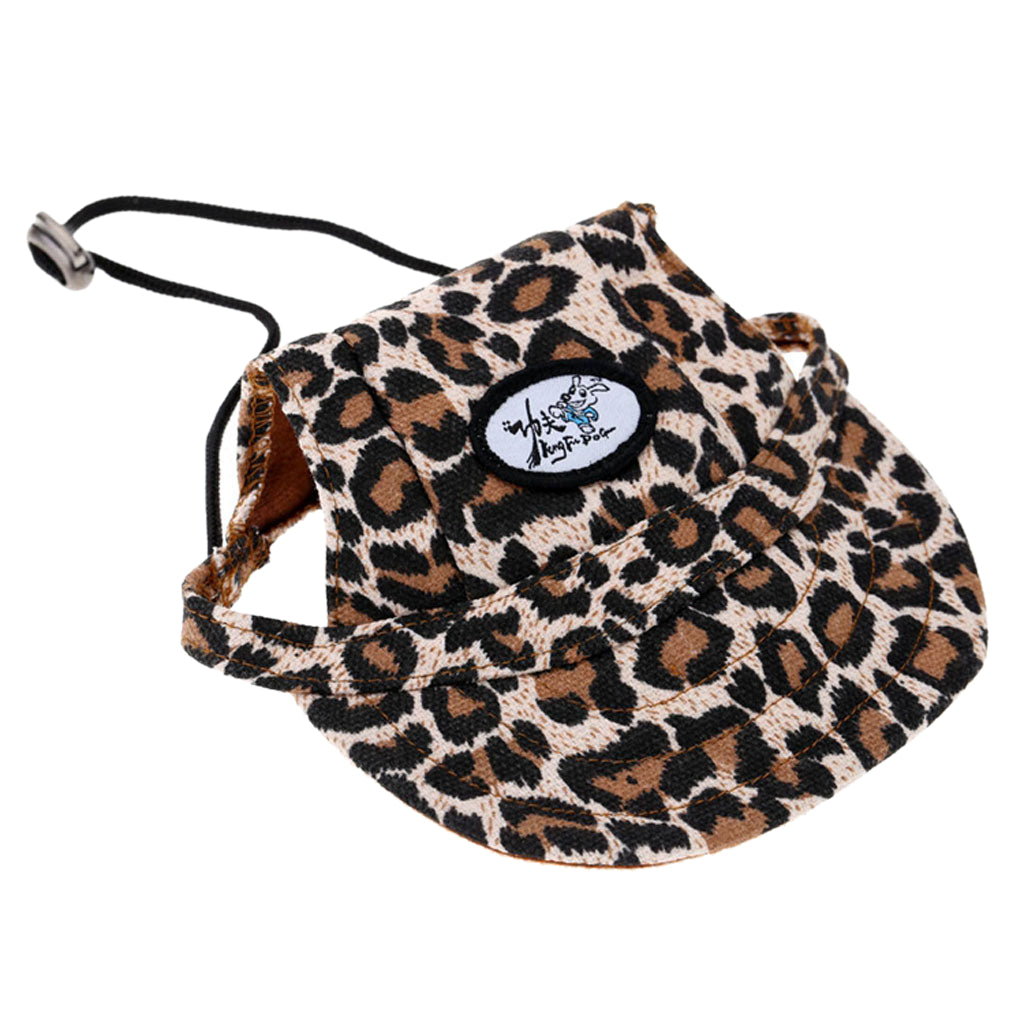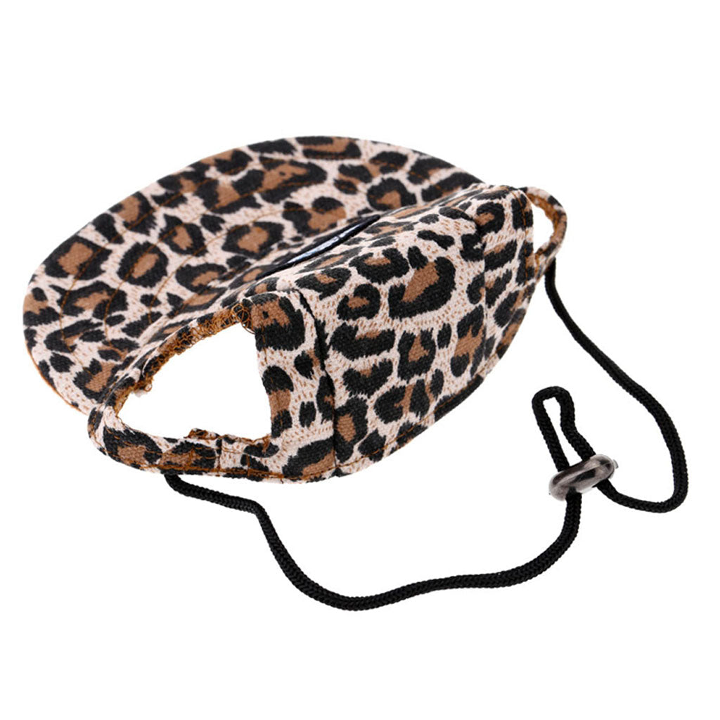 Small Pet Dog Cat Kitten Leopard Baseball Hat Neck Strap Cap Sunbonnet M