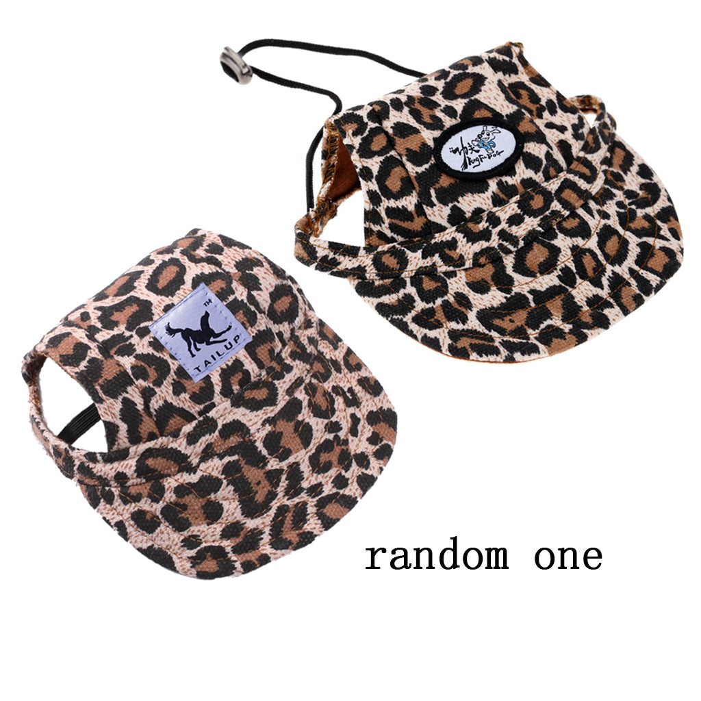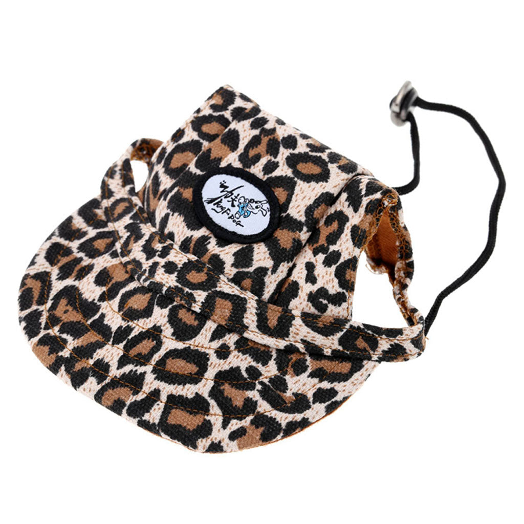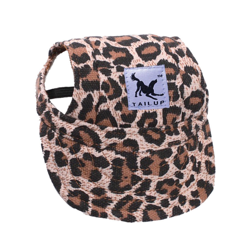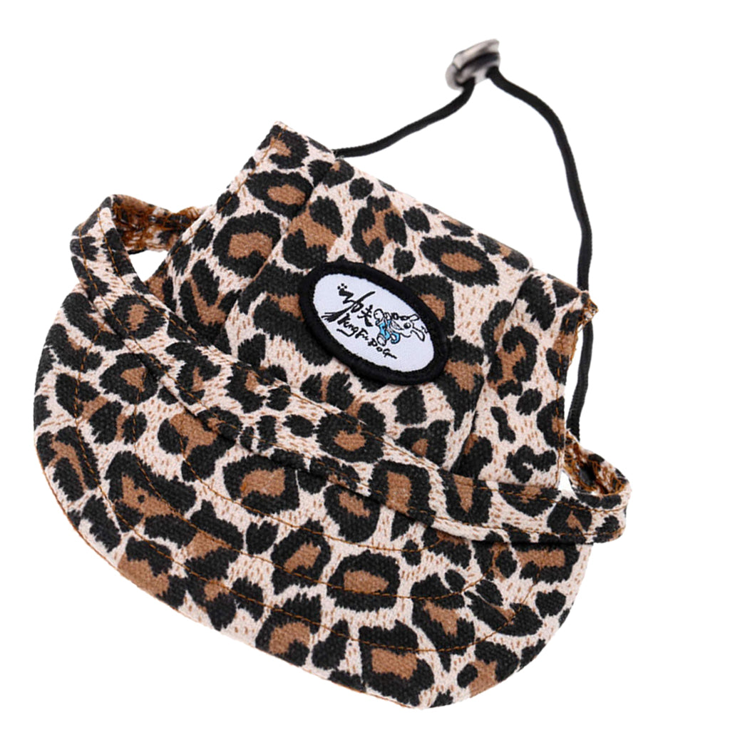 Small Pet Dog Cat Kitten Leopard Baseball Hat Neck Strap Cap Sunbonnet M
