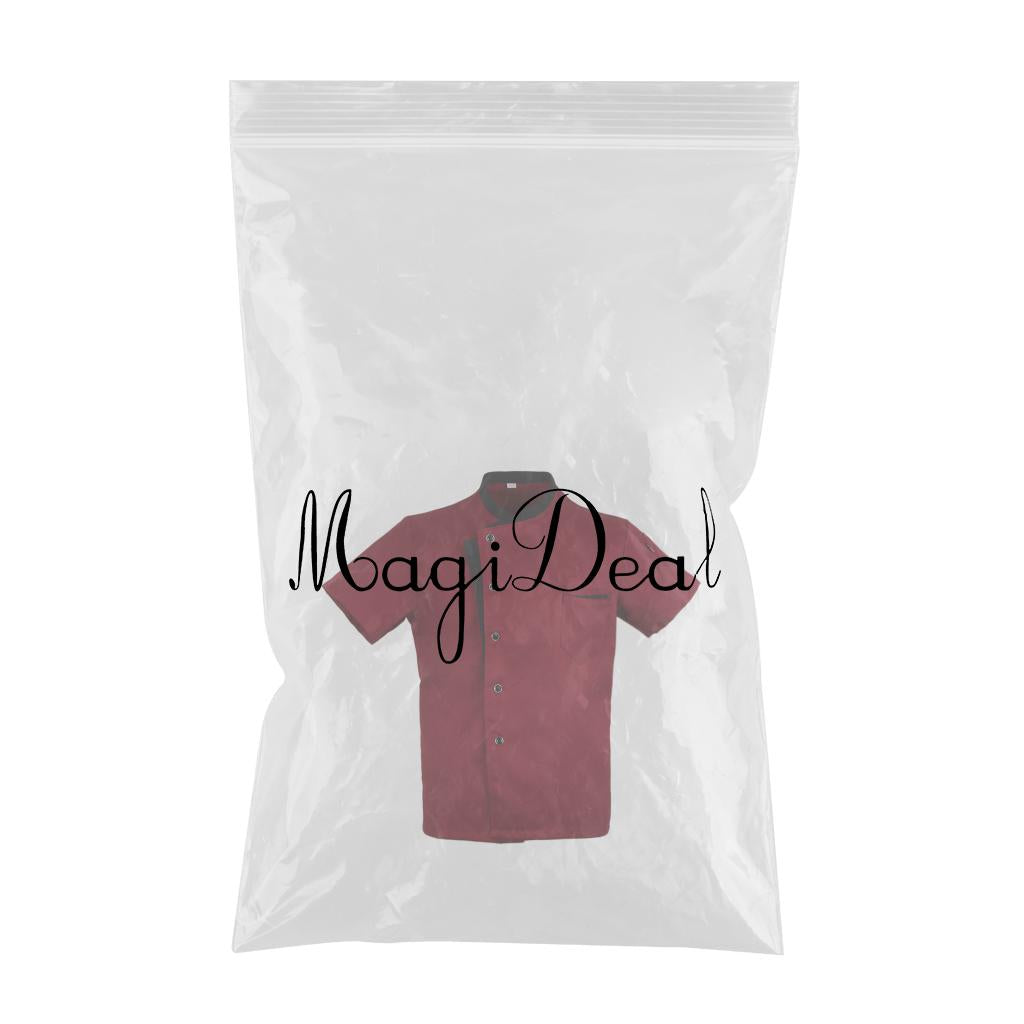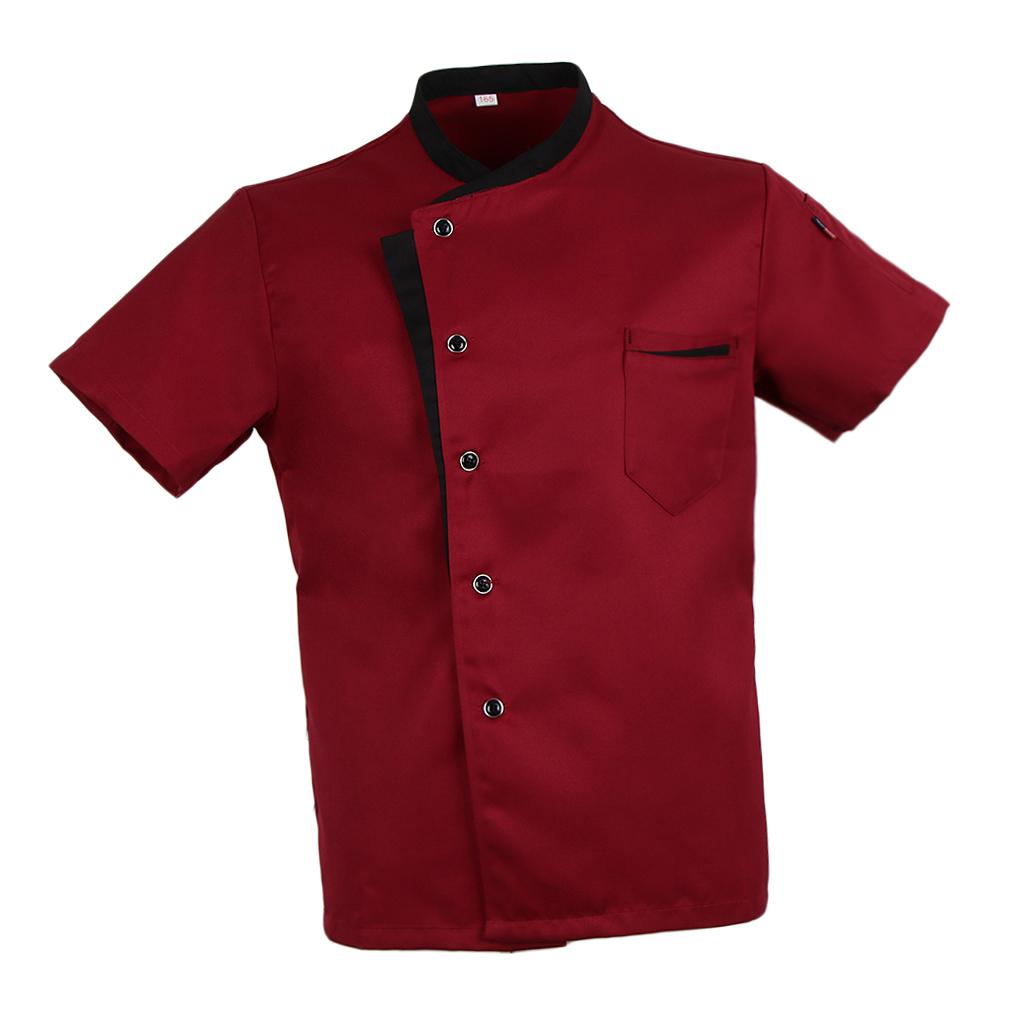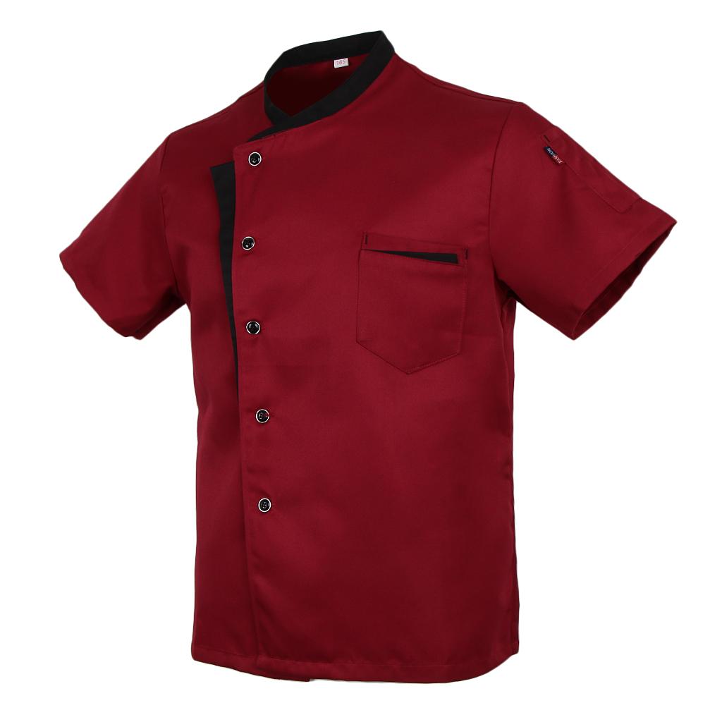 Unisex Chef Jacket Coat Short Sleeves Shirt Hotel Kitchen Uniform Red 2XL