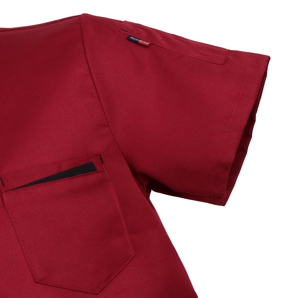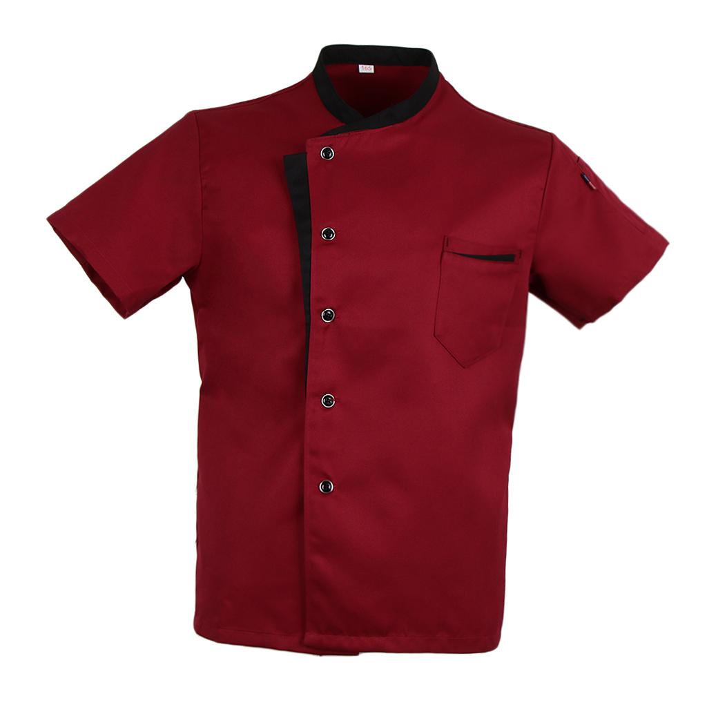Unisex Chef Jacket Coat Short Sleeves Shirt Hotel Kitchen Uniform Red XL
