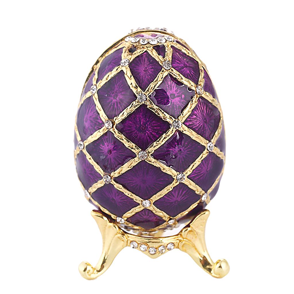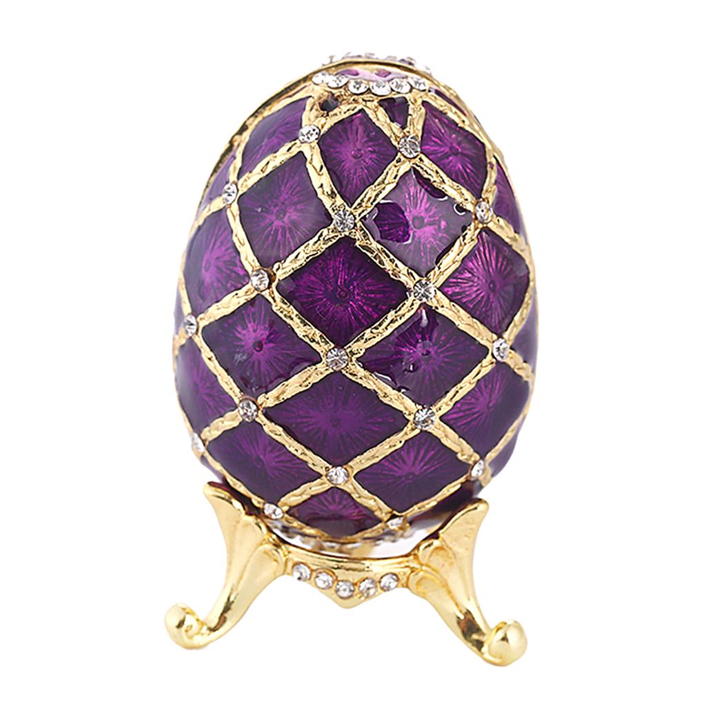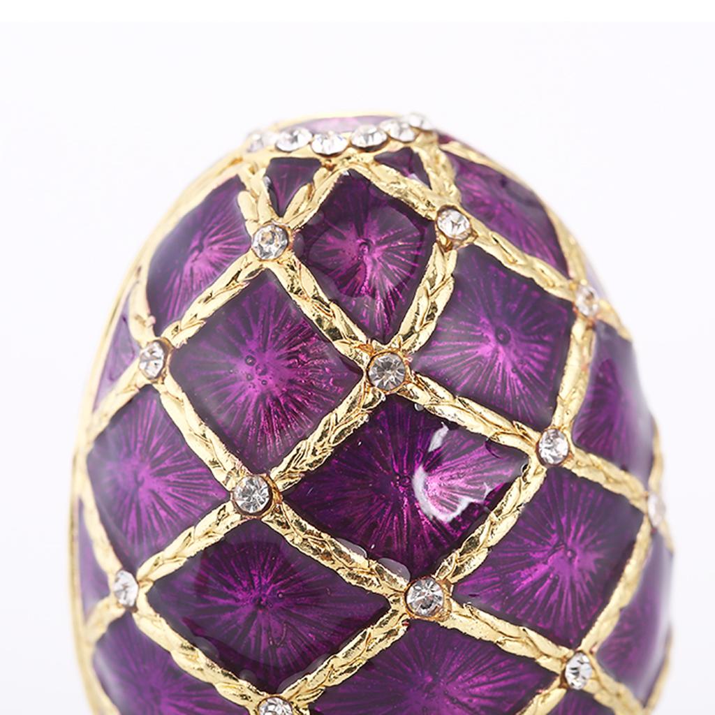 An especially delicate and beautiful jewelry box, enamel Easter egg design, shiny violet tone, gold plated diamond patterns, inlaid with rhinestones, vintage luxury style