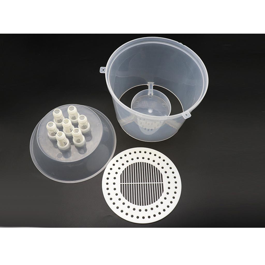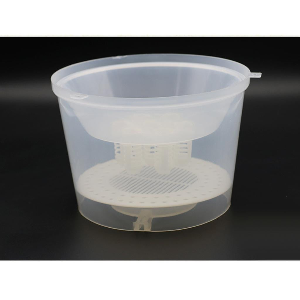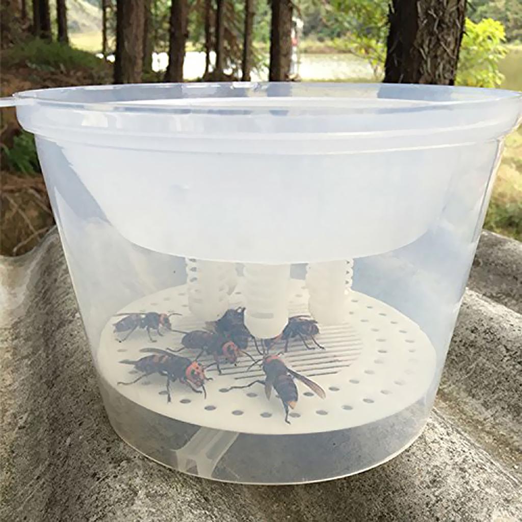 Hang the wasp trap device around the hive,the food inside the box will attract the wasp to enter storage barrel through the single way.