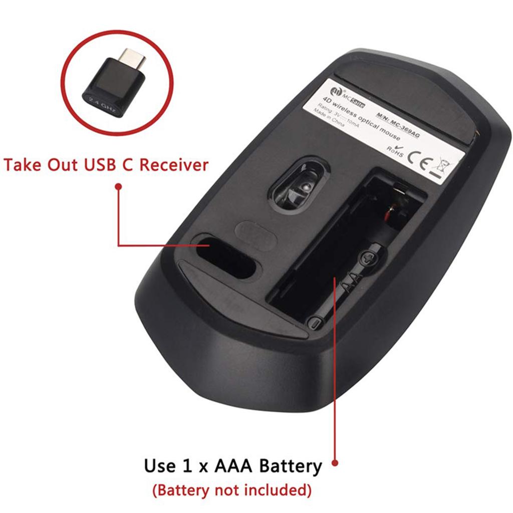 5- Mini Type-C Receiver: no driver needed; just plug the receiver into the bottom of the mouse and play.